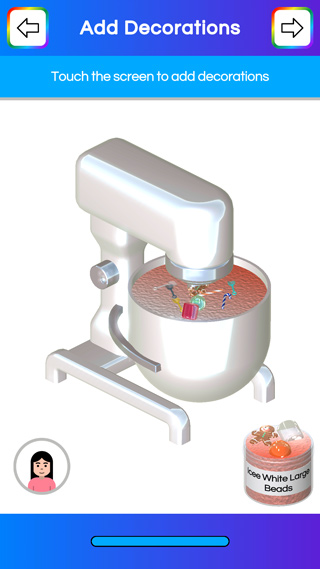 4、随后依指引选择粘液颜色并添加色素,再挑选一至多种装饰元素如泡沫颗粒、小方块、水果片等完成粘液造型。