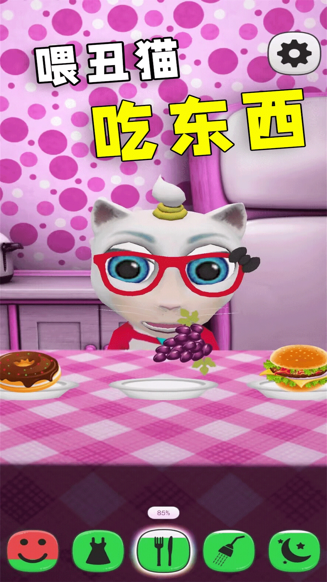 2、进行基础照料工作,每天在固定时间给丑猫喂食与洗澡,维持其健康状态,迅速增进亲密度,为开启学说话等功能打下基础。