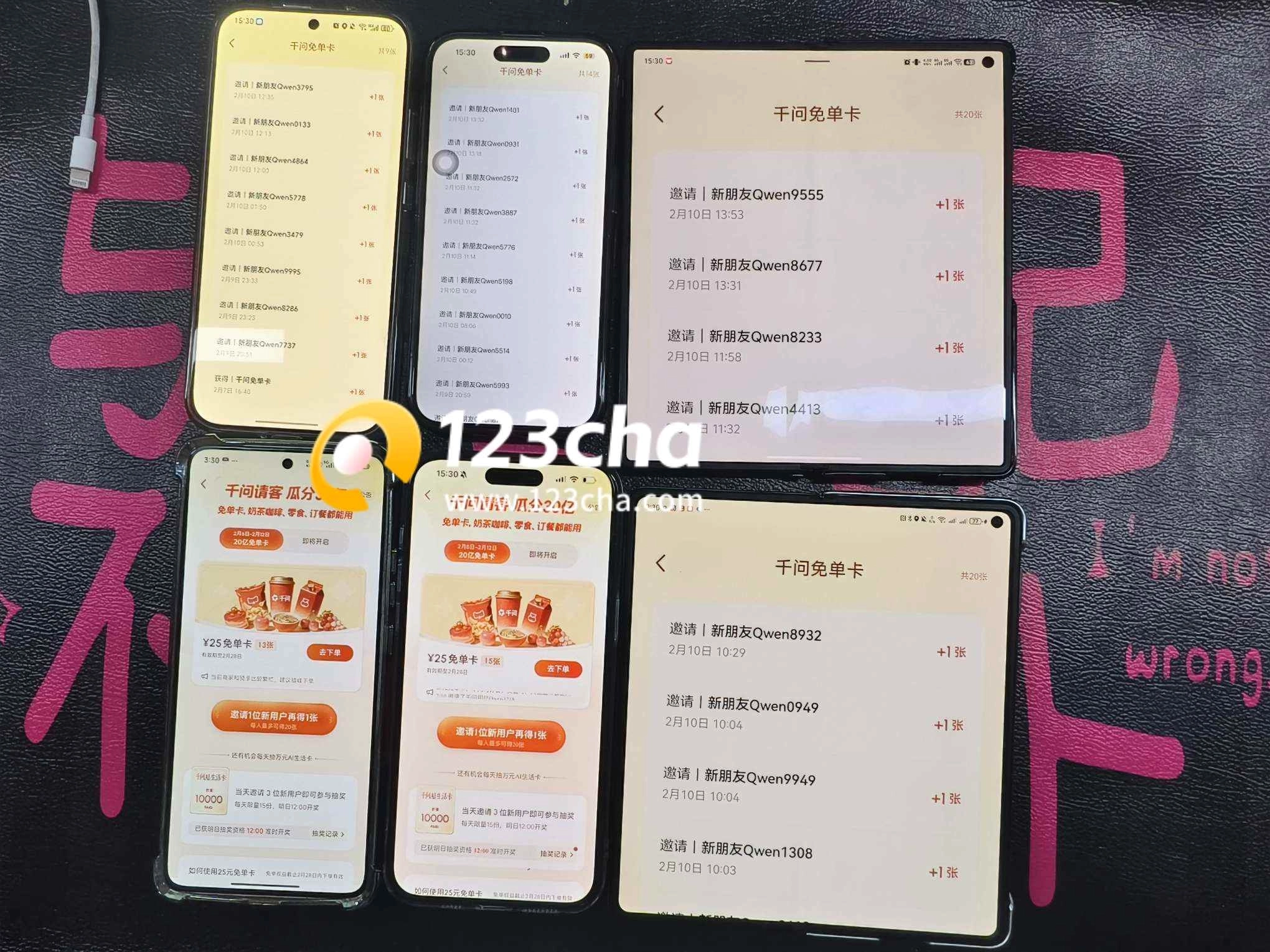 邀请抽万元权益:当日累计邀请3位新朋友,可额外获得抽取价值万元千问AI生活卡的机会,每天12点公布前一天结果,每天限量15张,活动期间共120张。