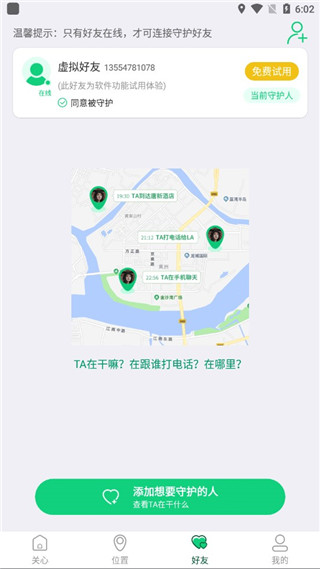 6、你还可以添加你想要守护的人,想要了解什么尽在你的掌握之中;