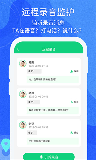 3、远程录音: 利用手机进行远程录音,随时了解亲友周围的环境状况,保障他们的安全;