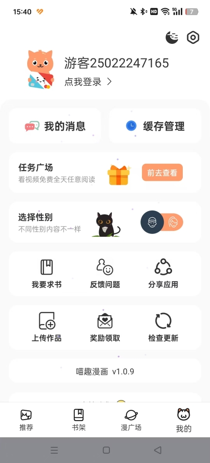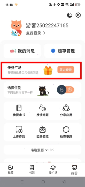 1、喵趣漫画安装在本站完成后,在喵趣漫画全集我的界面中,找到【任务广场】。