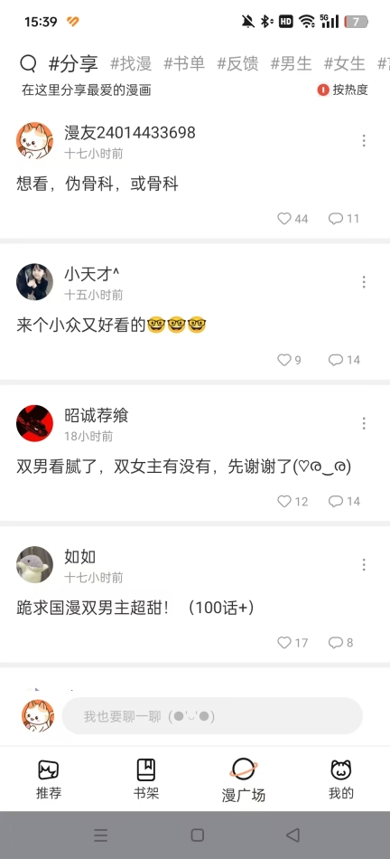 喵趣漫画里设有书单广场和社区功能。在书单广场,你可以发现各种类型的漫画集合;而在社区里,既可以请求别人推荐漫画,也能分享自己喜爱的作品给他人,或是浏览他人的推荐。随便挑选一部漫画来看,每天都会有实时更新,非常及时!