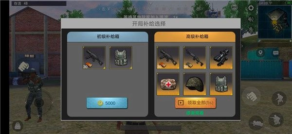 然后玩家们在熟悉之后就可以进入游戏中的广场选择开局装备的补给