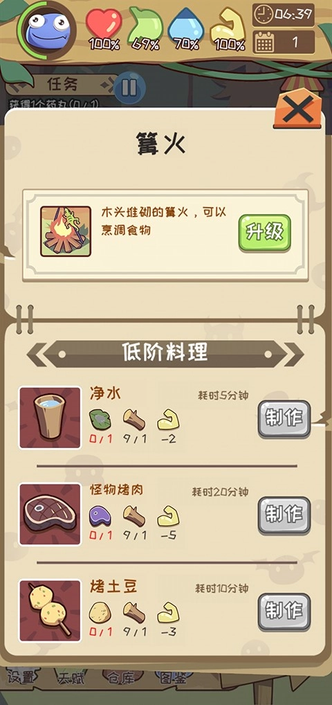当收集到足够材料后,可在营地中启动制作流程,推荐优先建造篝火设施,用于解锁更多道具配方。