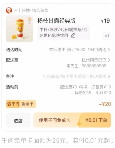 3.首次参与可获得1张千问免单卡,结算时自动使用