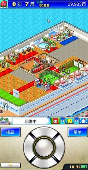 《豪华大游轮物语》安卓版本,是一款趣味性十足的模拟经营类游戏。它依旧保留了开罗游戏标志性的像素风格画面,以及经营建造的玩法。在游戏里,玩家将化身为游轮的经营者,要持续对游轮进行装修与升级,塑造出一艘豪华游轮,以此吸引众多客人前来消费。要是你对此感兴趣,那就赶紧下载《豪华大游轮物语》安卓版体验一番吧。