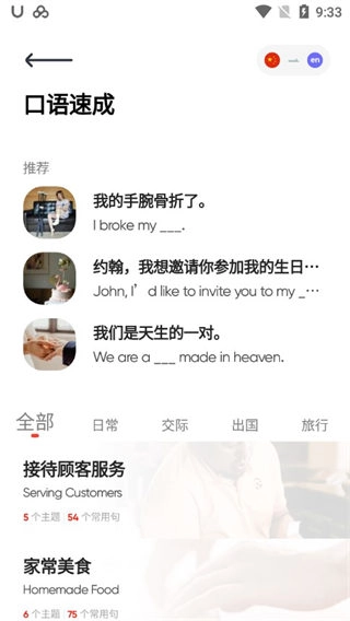 3、软件内设有口语速成培训,日常工作中常用的语言都能在此学习。