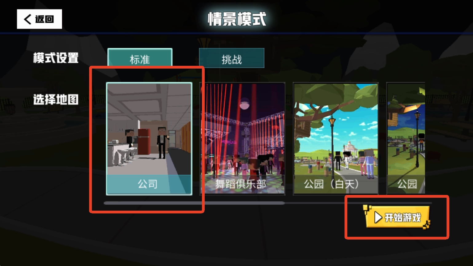 1、第一步,随意选择一个地图进入,此次我们进入情景模式中的公司地图,接着点击“开始游戏”。