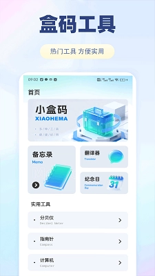 小盒作为一款手机工具,功能多样且实用,包含翻译器、备忘录、纪念日提醒、分贝仪、指南针等各类热门工具,能满足日常的多种需求。此外,它还具备自然舒缓的音效,帮助你放松身心,同时提供精美头像壁纸任你随心更换,堪称贴心的手机助手。无论是生活场景,还是办公、娱乐场景,它都能满足相关需求。小盒整合了文件管理、智能扫描、单位换算、密码保险箱等超20项高频功能,一键就能直达,无需在不同应用间切换,既节省时间又省力。而且,其界面简洁,没有广告干扰,操作起来流畅顺滑,不会出现卡顿现象。