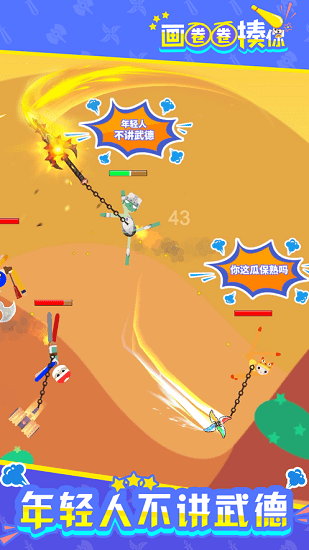 画圈攻击,充满魔性的休闲对战游戏。只需滑动手指画圈就能发起攻击,击败对手后还能升级角色。游戏操作简单易懂,多种武器供你挑选,战胜敌人即为胜利。这种让人上瘾的游戏方式会让你爱不释手,快来感受这份独特的战斗乐趣吧。