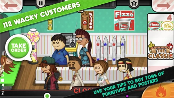 老爹热狗店中文版中说是制作热狗,其实是在制作塔可,是来自于墨西哥的美食,在游戏中玩家需要根据客户的要求在塔可中摆放食材与酱汁,并在客户的耐心消失之前递给客户才能够获得收益。而且,还可以解锁各种装饰和设施,不断为店铺升级,创造全新口味的热狗品种,赚钱大量的金币,扩建你的店铺规模。