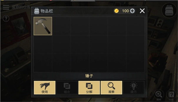 8、点击这里的锤子,下方的使用、分解、观察键位可以点击。