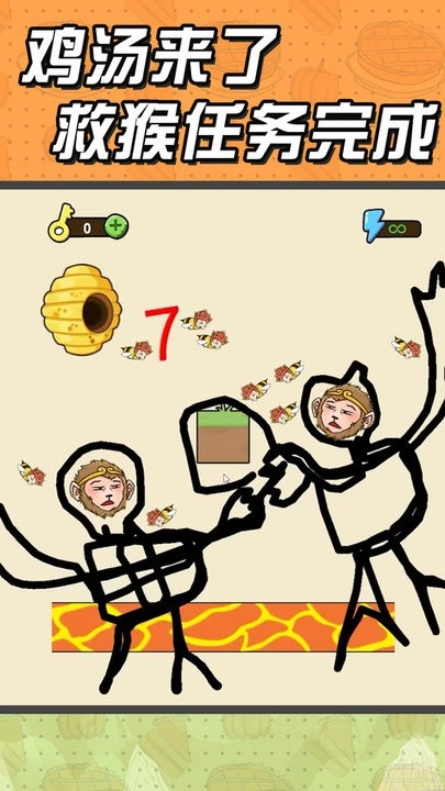 3、需格外留意在空中飞舞的蜜蜂,一旦它们冲破防线与猴子接触,就会宣告失败。务必及时补画防御线,直至倒计时结束成功通关。