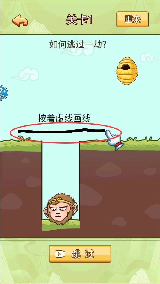2、一旦猴子现身,即刻围绕它快速滑动绘制封闭线条,构建起保护圈,以此阻挡外界的威胁,务必保证小猴子一直处在安全区域当中。