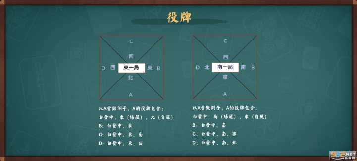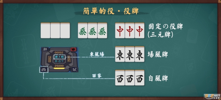 役牌是由風牌(場風、自風)、三元牌組成的刻子(碰也可以)