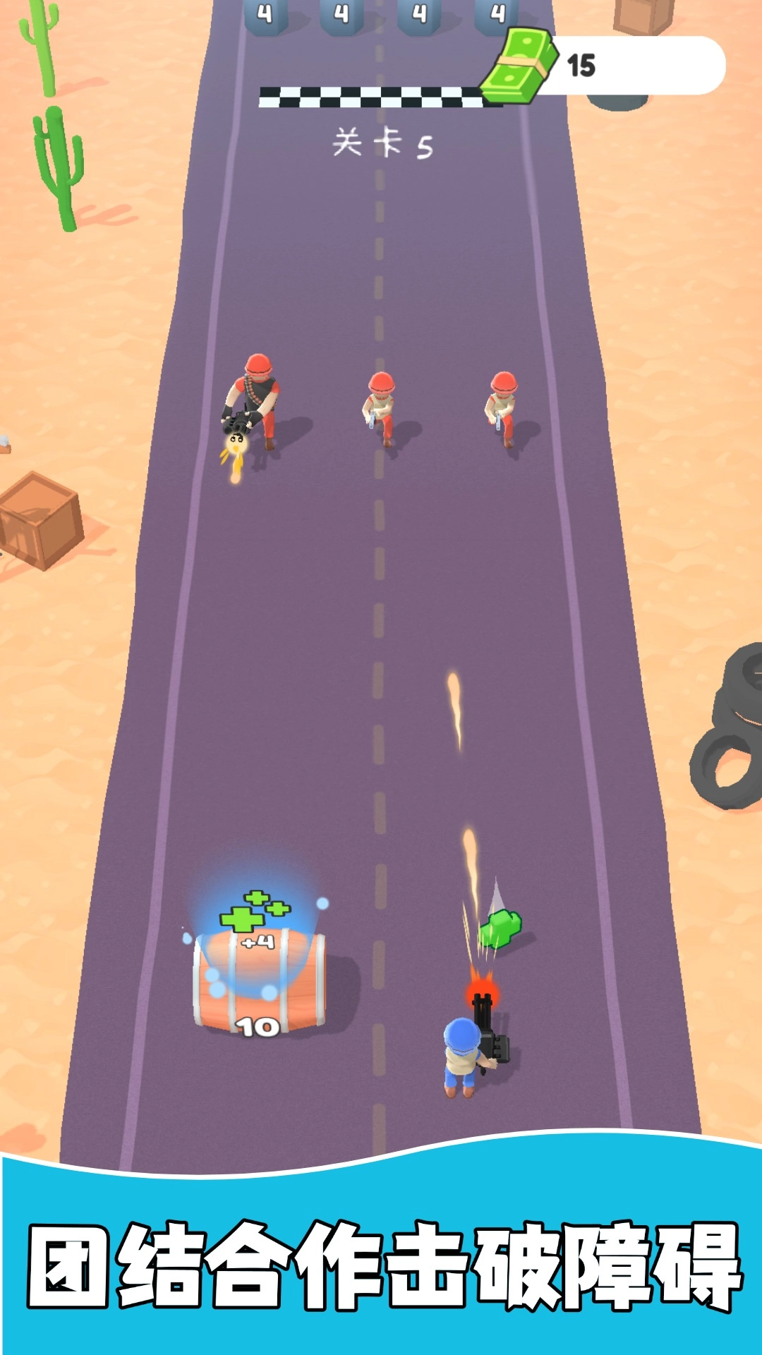 通过滑动屏幕,即可操控士兵实现移动、攻击或躲避等动作。此外,自动前进机制的设置进一步简化了操作流程,这一设计使得游戏对于休闲玩家而言更为友好。