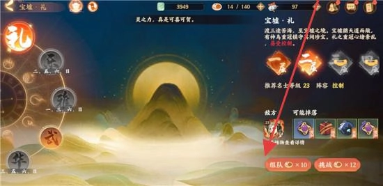 1、首先进行“主题择取”!选定“礼”“乐”等宝墟主题关卡,通过3个步骤完成确认,切勿盲目选错,每开启1个关卡进行挑战。