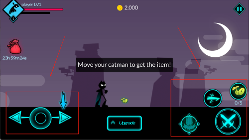 1、左侧负责操控角色移动,右侧则分布着各类功能按键与技能按钮。