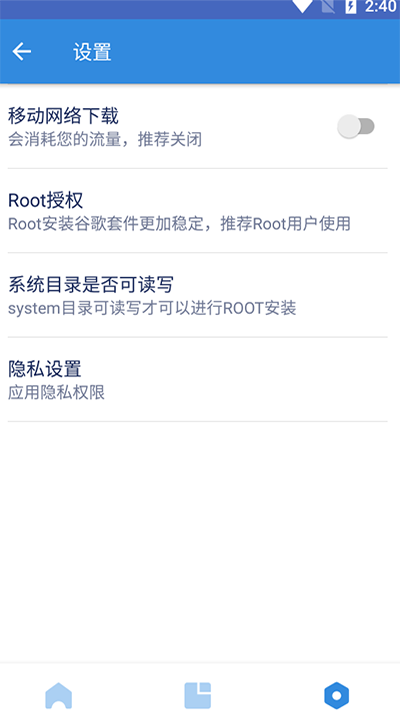 1、在当快在安装好谷歌三件套后,进入到主页面选择右下角的设置按钮。