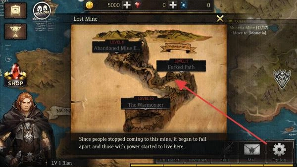 2、在地图中选择“Lost Mine”区域,进入后探索废弃矿井,在此过程中击杀怪物、开启宝箱,从而完成“LV1Rian”成长任务。