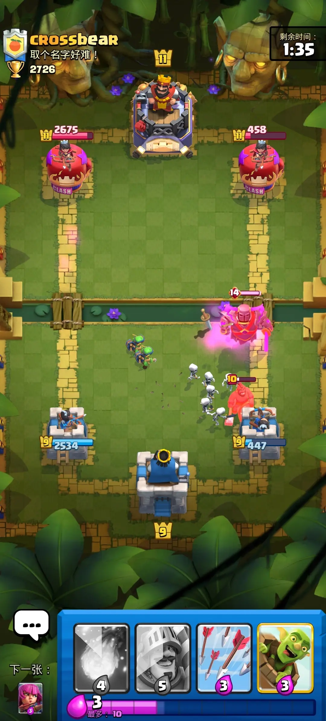 2、哥布林飞桶:3圣水解锁,可以在地图上面任何地点释放,我一般都是直接拿来攻击对面公主塔,移动速度快,对塔伤害高,是我拿来拆塔的主力军。