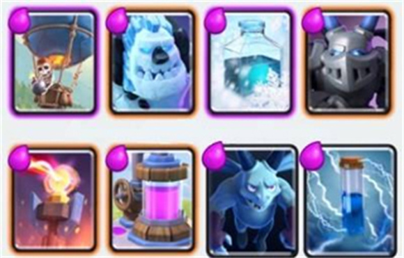 1、冰冻气球兵组合:冰冻法术搭配气球兵的组合,曾是相当强势的存在,其迅猛的拆塔速度让许多玩家倍感棘手。这套组合通常用戈仑冰人在前承担伤害,气球兵紧随其后推进,再借助冰冻法术的控制效果,为气球兵争取更充足的拆塔时间,以此持续消耗对手的建筑;防守端则依靠亡灵围绕地狱之塔,来消灭敌方的进攻单位;由于卡组里唯一的核心输出是气球兵,因此务必精准把握气球兵的进攻时机。
