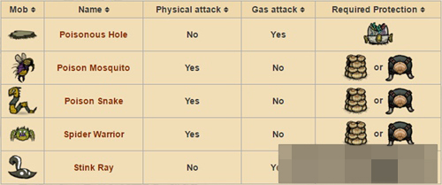 会攻击的怪物:蜘蛛,猴子,蝴蝶,猪人,有毒大黄蜂(红色蜜蜂不知…)。