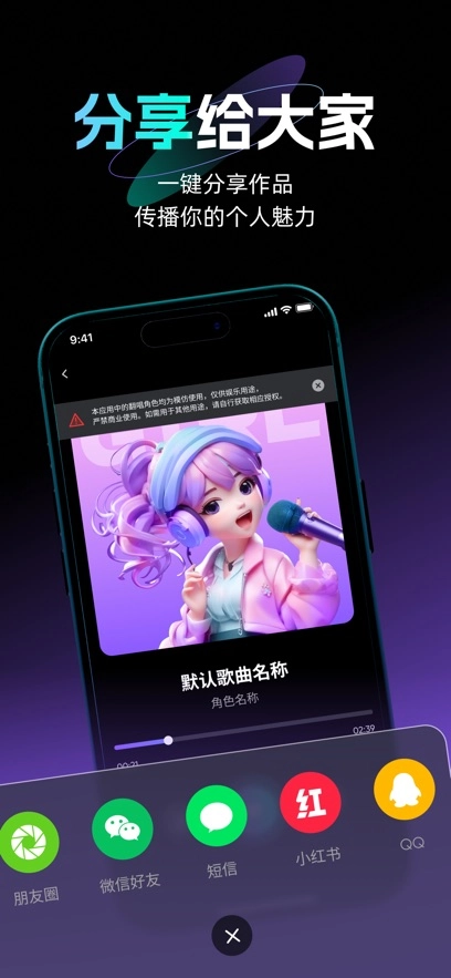 3. 社交媒体分享:只需一键,就能将你的翻唱作品分享至微信、QQ、小红书等社交平台,和朋友、粉丝一同感受音乐带来的欢乐。