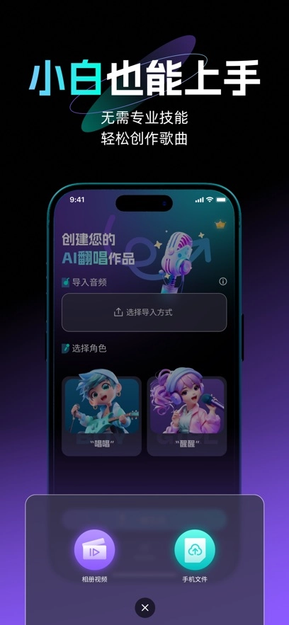 挑选AI角色成为你的专属歌手,即可轻松打造任意歌曲,尽情探索音乐世界的无限可能!