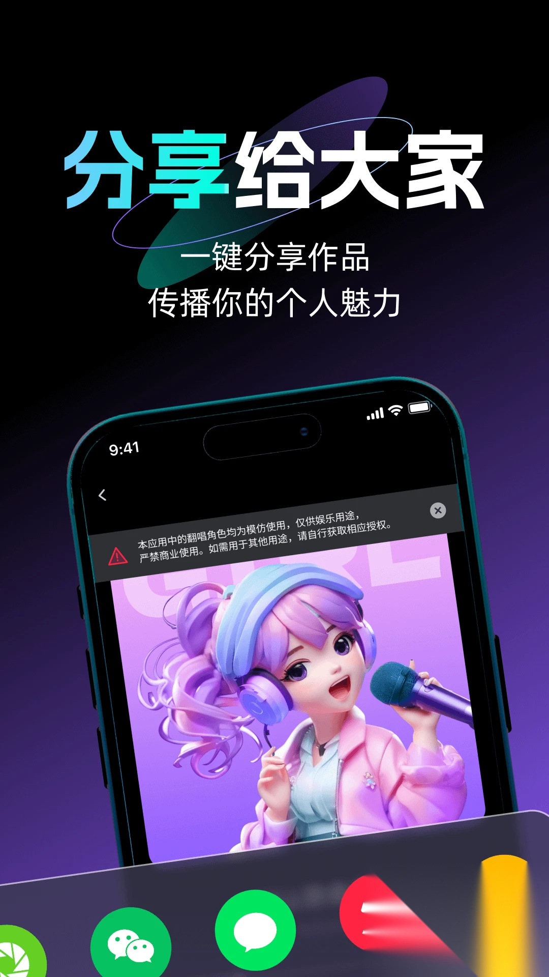 3. 分享到社交媒体:只需一键,就能把你的翻唱作品分享至微信、QQ、小红书等社交平台,与朋友和粉丝一同畅享音乐带来的乐趣。