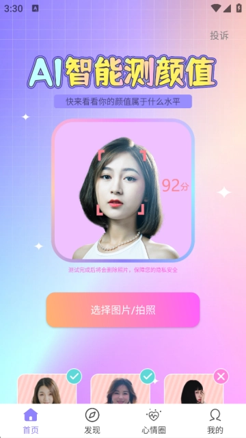 2、用户可以上传各样人脸照片,使用软件AI测颜值;