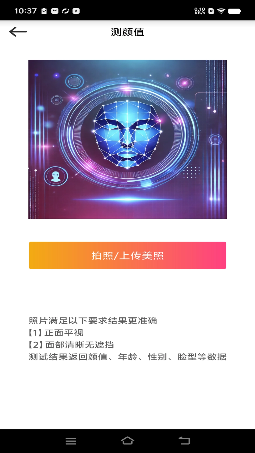 为您开展颜值评测,通过识别面部72个特征点,借助大数据分析,最终给出颜值结果。