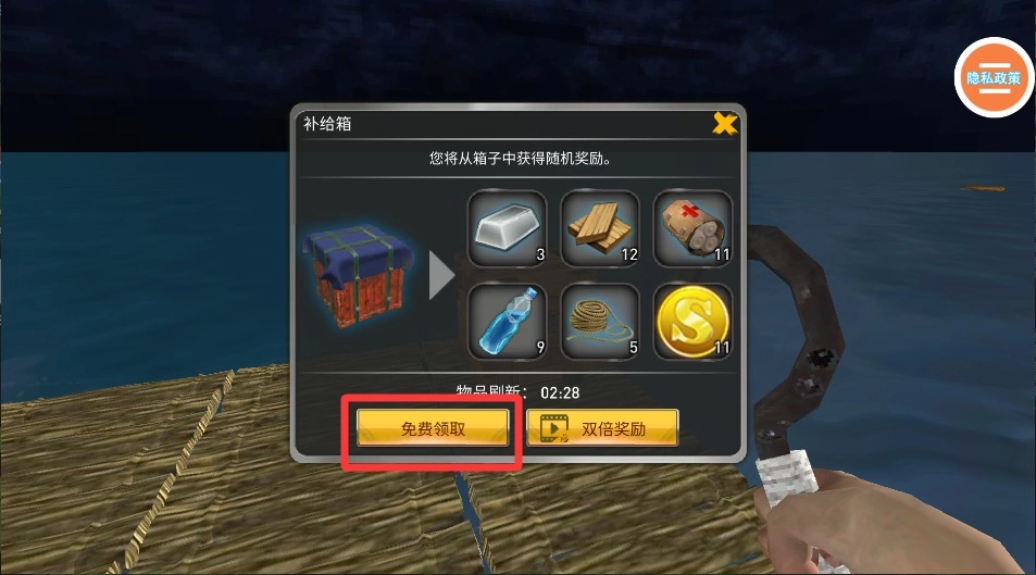 3、每天登录游戏,就能领取生存补给包,里面装有基础工具与医疗用品,助力应对岛上的突发危险状况。
