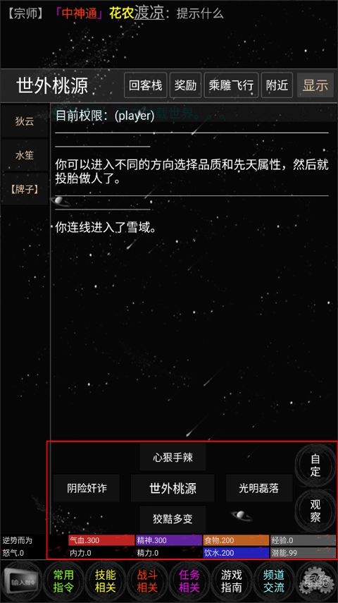 第三步:出生时会自带天赋技能(special),该技能随机生成,若对此不满意,可选择自杀,从而重新随机获取。