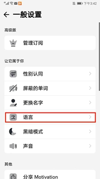 3、在此界面中,找到并点击【语言】选项,如图所示。