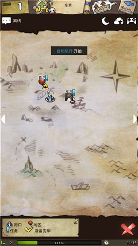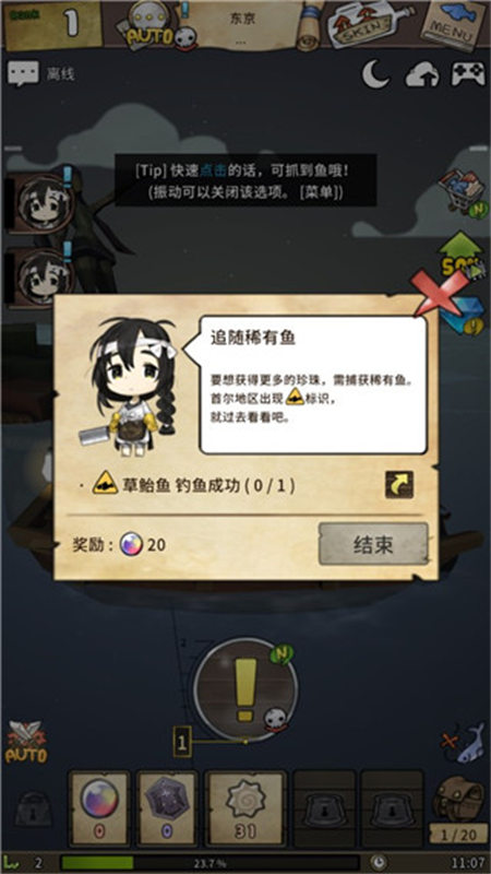 地图旁的Auto当你在天赋里升级自动导航技能就能解锁,后期放置获得珍珠天赋的必要途径。左下角的Auto是升满自动钓鱼后解锁的按钮