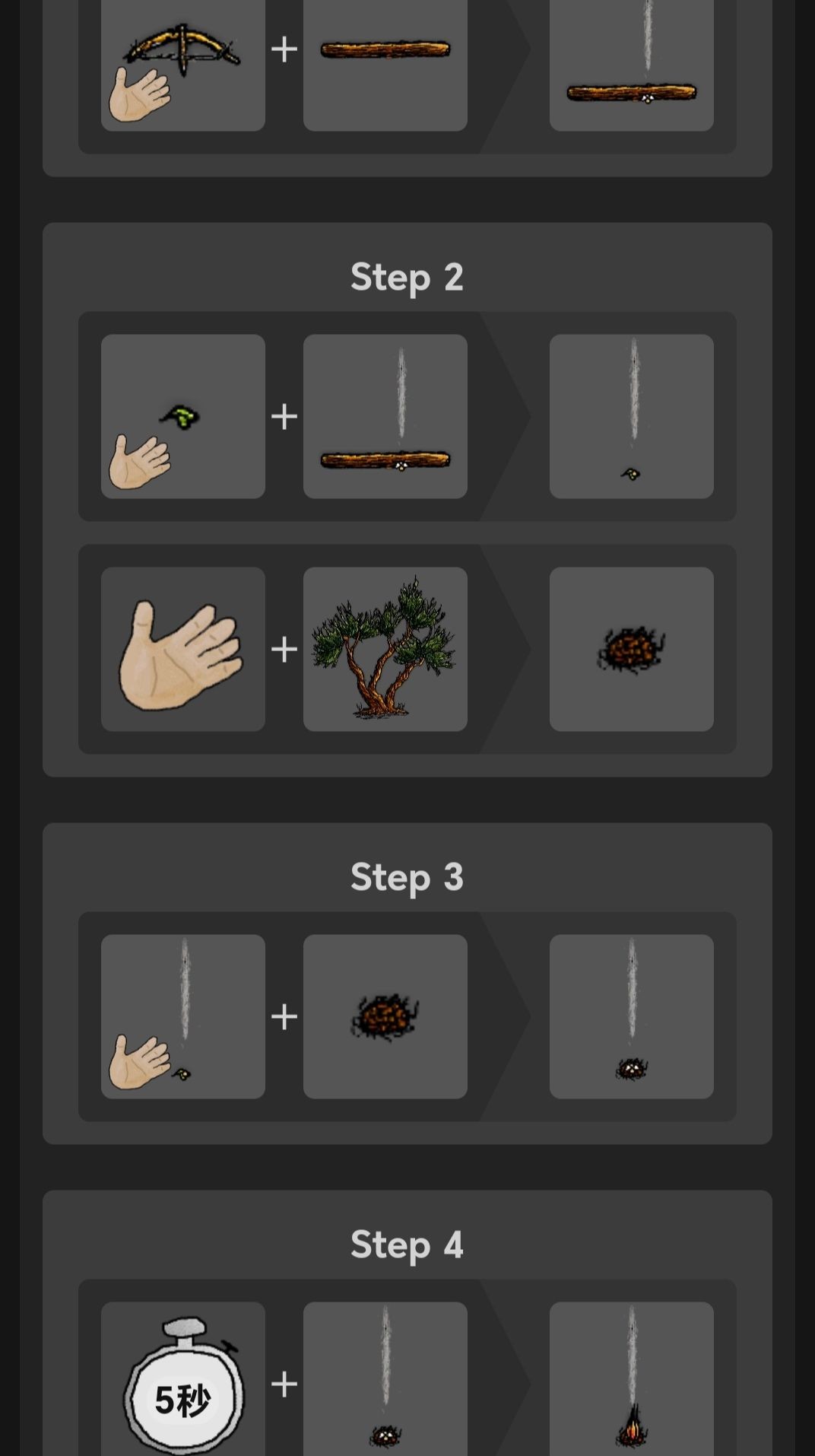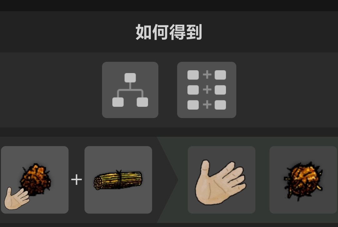 【带有火星的叶子+火绒=冒烟的火绒】