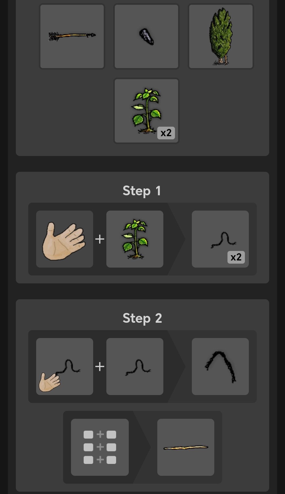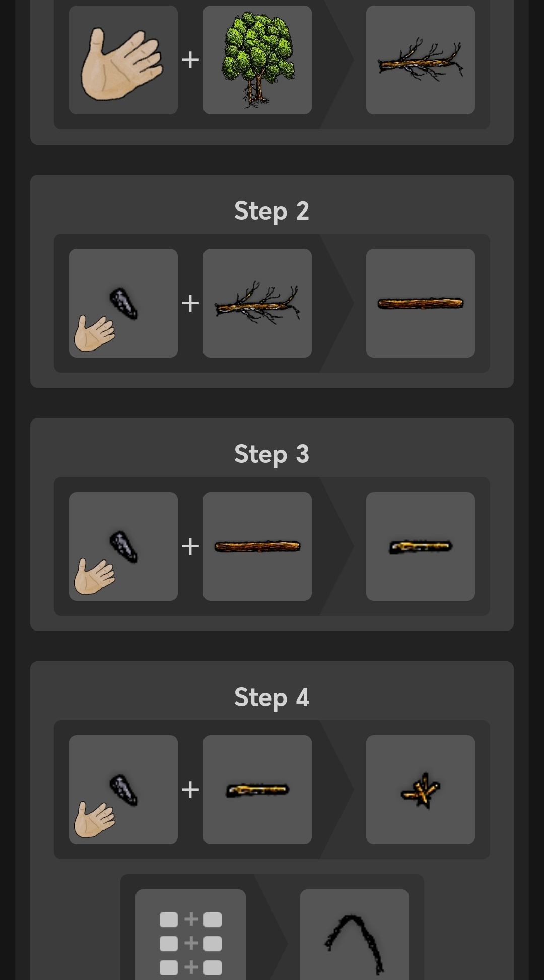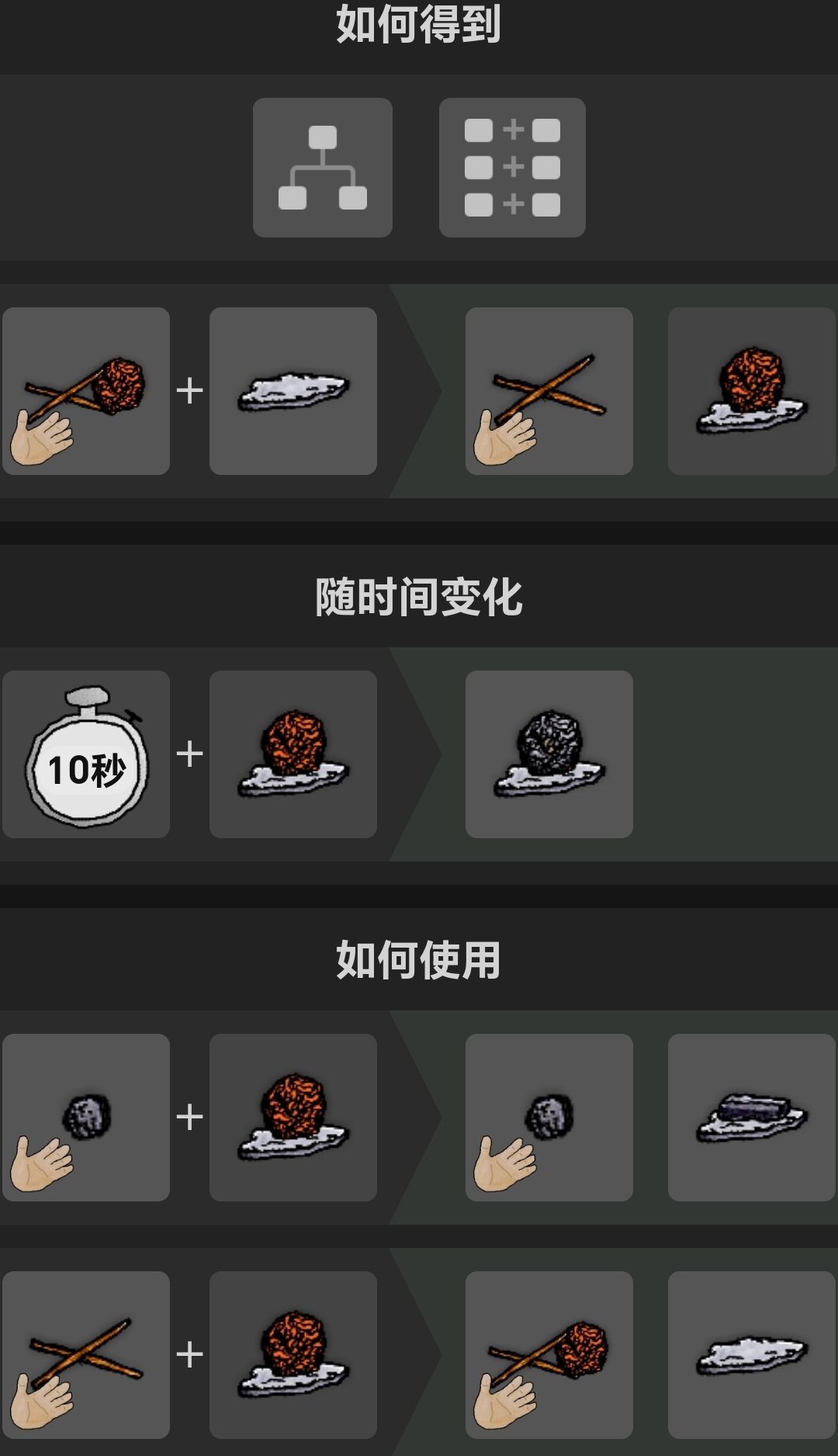 【石斧+任意树枝=引火柴】