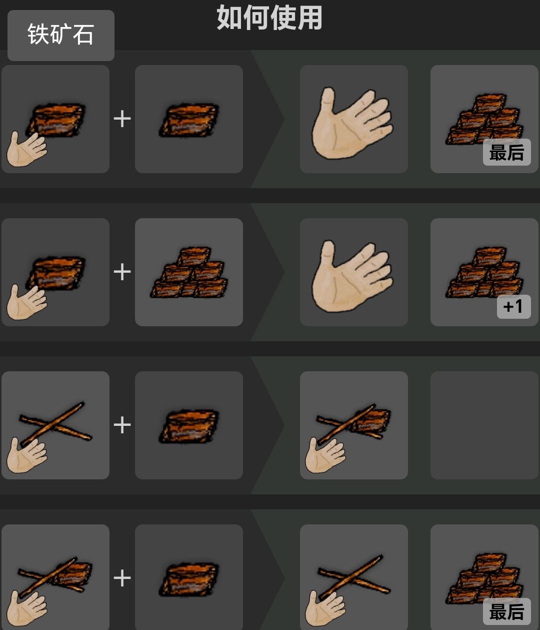 使用石头打一次扁石上的热铁,得到锻铁