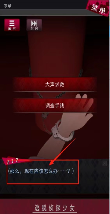 3、查看对话框内容后点击跳过,留意手铐上铁链的细节。