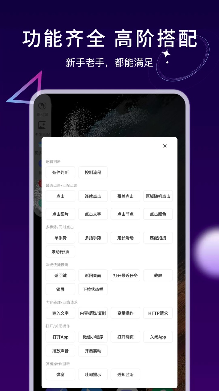 1. 拥有丰富可自定义脚本的移动“密钥向导”,能够帮助您更高效地掌控手机。