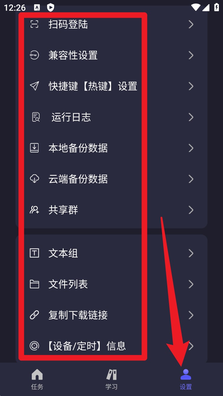 2. 登录成功后,点击底部导航栏的「设置」,进入扩展选项区查看备份、热键等功能。
