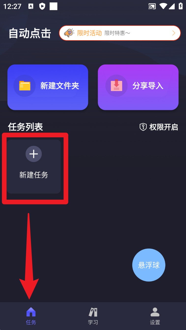 3. 返回「任务」页面,点击「新建任务」开始录制自动点击流程,自定义任务内容。