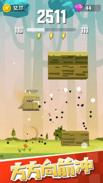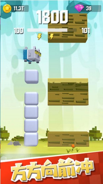 其次是游戏的主要玩法“向前冲”,在关卡制模式的推动下,玩家所经历的每一关都要反应迅速,操作方式很简单,就是轻触屏幕使小动物生出“方方”,将角色升到合适的高度、穿越层层阻碍。