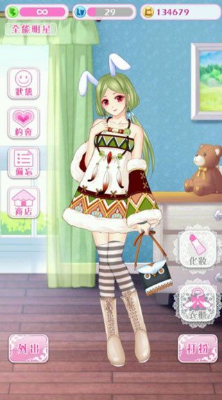 1、精致的日系少女画风,展现帅哥美女的流行魅力~ 2、上百种饰品、发型、包包,600多款连衣裙及上千种饰品随心搭配; 3、睫毛、眼影、美瞳、腮红、纹身……更多个性化选项满足玩家对美的追求; 4、精美的背景,清新脱俗的画风,每一幅都精心制作; 5、浪漫邂逅,与各种男神约会,绽放美丽恋情; 6、六位风格各异的男神女神,从00后少女到50后阿姨都能找到心仪的对象; 7、定制背景音乐,在游戏的同时享受动听旋律。
