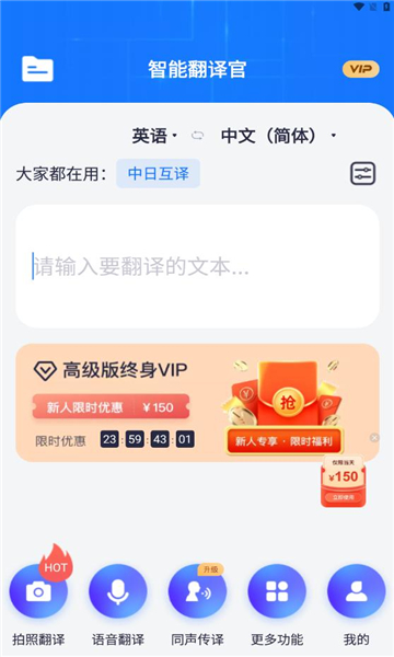 向大家推荐智能翻译官免费版!这是一款非常实用的手机翻译应用,界面简洁,操作简便易懂。它具备强大的翻译能力,支持多种语言之间的翻译,极其方便实用,欢迎您来体验!