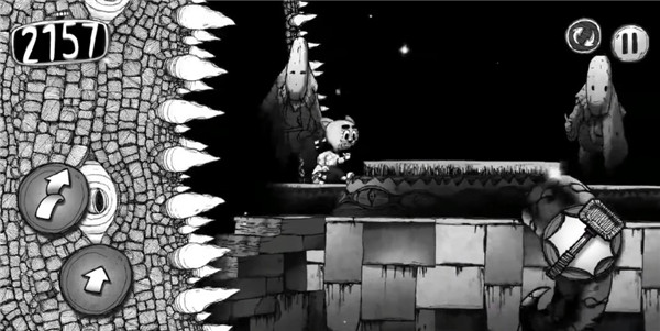 《蠕虫冲刺》是一款与众不同的跑酷游戏,它以横版形式呈现,并采用了独特的黑白卡通画风。这款游戏在细节处理上极为精致,场景中还有各种奇异生物飞过,营造出一种复古的氛围。
