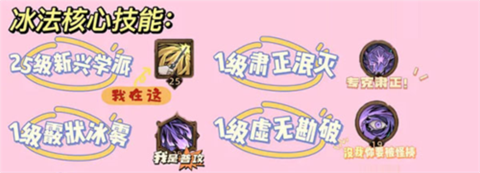 1【霰状冰雾】作为1级普攻技能,能够对全体敌人发起攻击,配合学派技能可实现快速清图。除了新兴学派的技能外,其他技能只需点1点,然后根据个人装备的效果来决定是否增加额外的技能点。