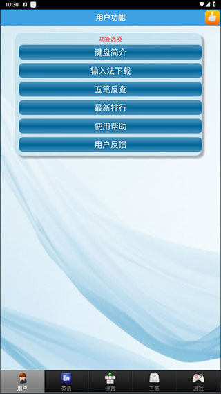 1、进入软件之后可以看到软件的用户功能,比如键盘简介、输入法等等。